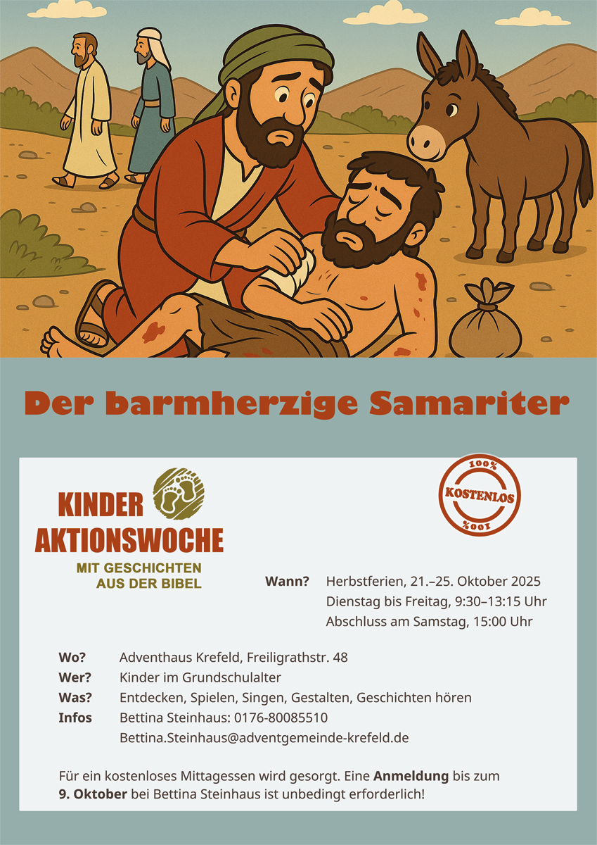 Wir sind eine Ortsgemeinde der Siebenten-Tags-Adventisten, einer evangelischen Freikirche mit ca. 22 Millionen Mitgliedern in über 200 Ländern der Erde. Unser Vertrauen in Jesus Christus bestimmt unseren Glauben. Der Gottesdienst ist unsere bedeutendste gemeinsame Veranstaltung. Die Anbetung Gottes, sein Wort und gegenseitige Anteilnahme stehen im Mittelpunkt unseres Gottesdienstes. Jeder ist herzlich willkommen!